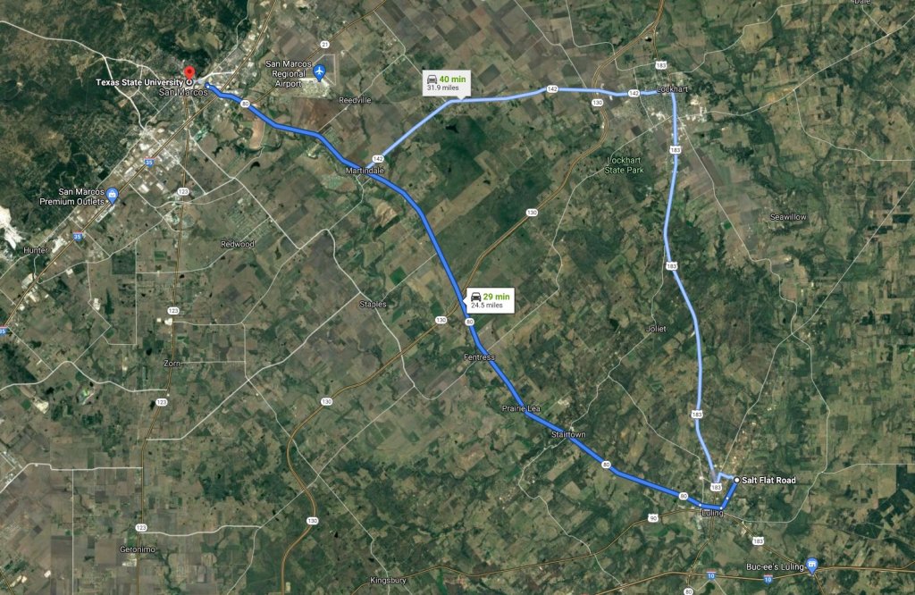 I guess it depends on which address you use. Was the car found near 2365 Salt Flat Road, or near 4700 Salt Flat Road?