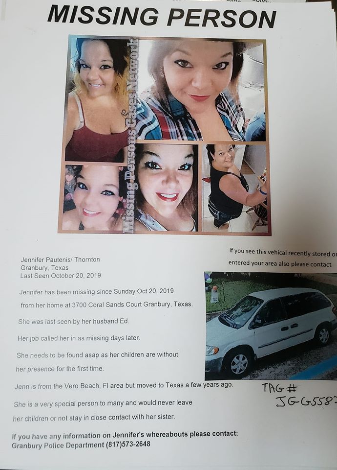 According to family members, Jenn is a 911 dispatcher for LifeCare EMS in Weatherford. Thornton contacted the Hood County Sheriff’s Office to report her sister missing, according to an incident report released by the sheriff's office after the Hood County News filed an Open Records request. No other information was available because Sheriff Roger Deeds has stopped communicating with the Hood County News.
