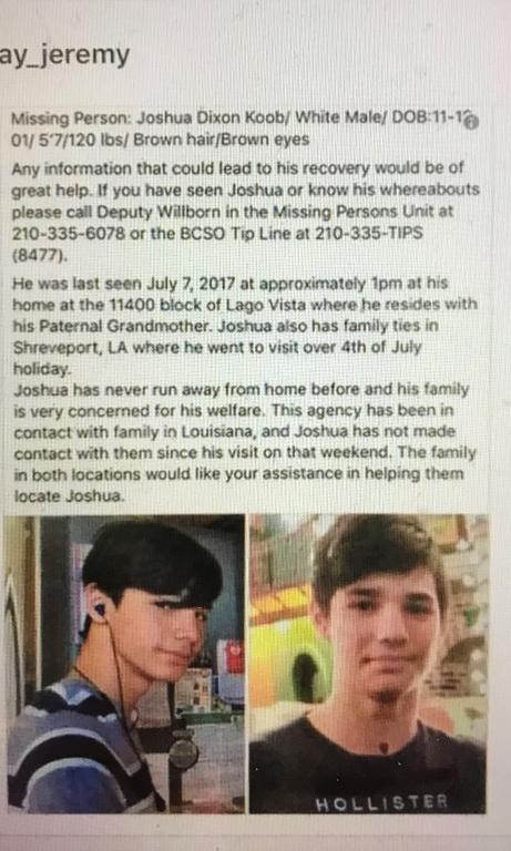 Investigators say the 15-year-old also has family ties in Shreveport, Louisiana, who he went to visit over 4th of July holiday. But he has not been in contact with them since he went missing.