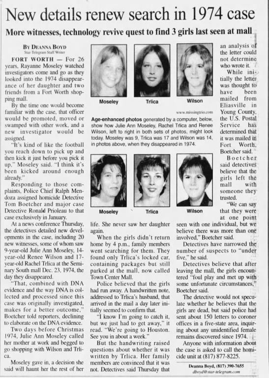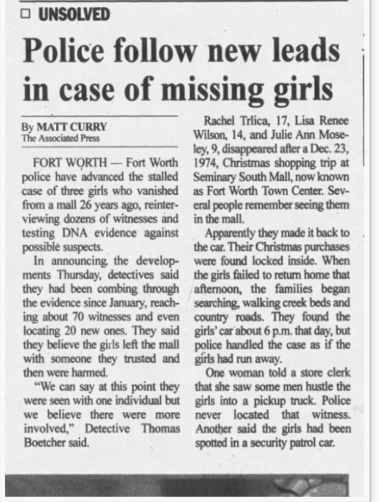 -When asked if he knew if they had made it inside the mall, Richard Wilson (Renee's father) said that they had supposedly been spotted at the mall in Murphy's and a shoe store. Then he added that supposedly there was some tall, skinny guy following them, with "California" on his jacket. Another guest, Sheryl McCollum, mentioned a man coming forward in 1975 saying that he had seen them at a record store and saw a man lingering around or following them. Mr. Wilson did end up clarifying there was only the one gift from home in the car that Renee had brought, so they don't have anything definitive like a receipt that would help clarify where they had gone.