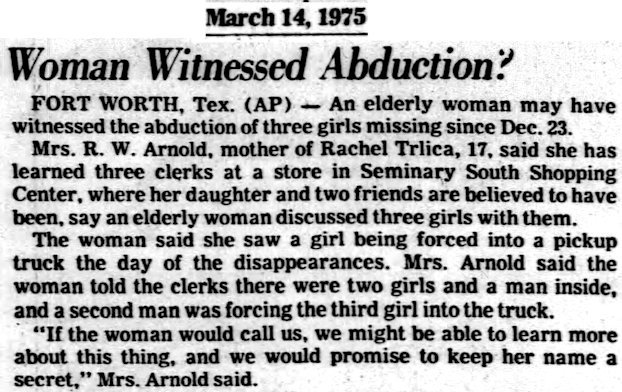 And the third whitness, man who came forward years later and saw three men struggling to push three girls into a van. He confronted them, heard that one is guy's wife, and actively tried to remember that thing, cause it disturbed him so much.