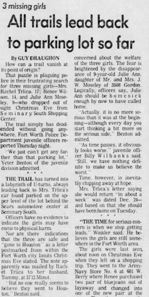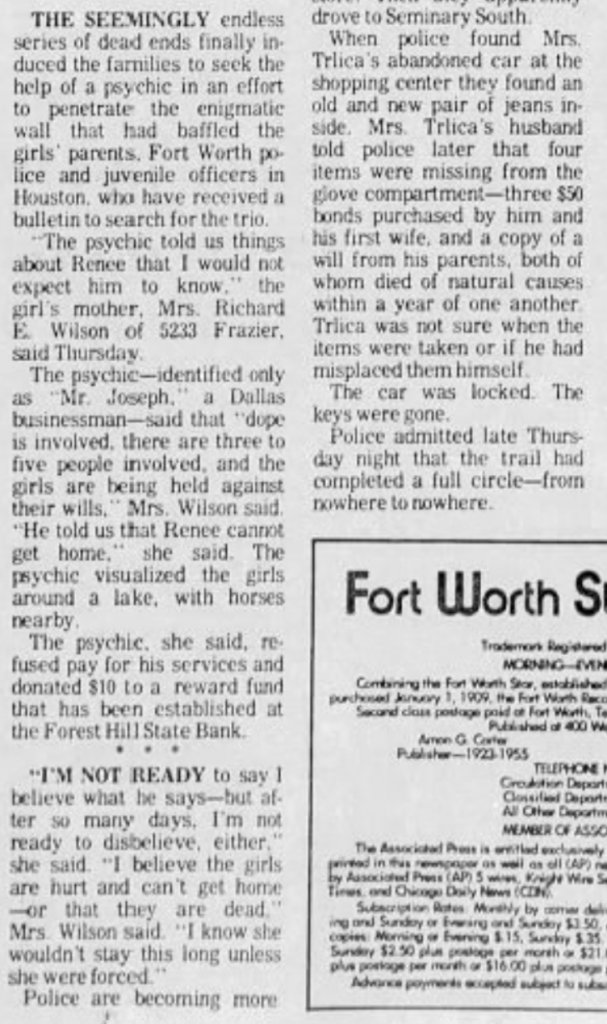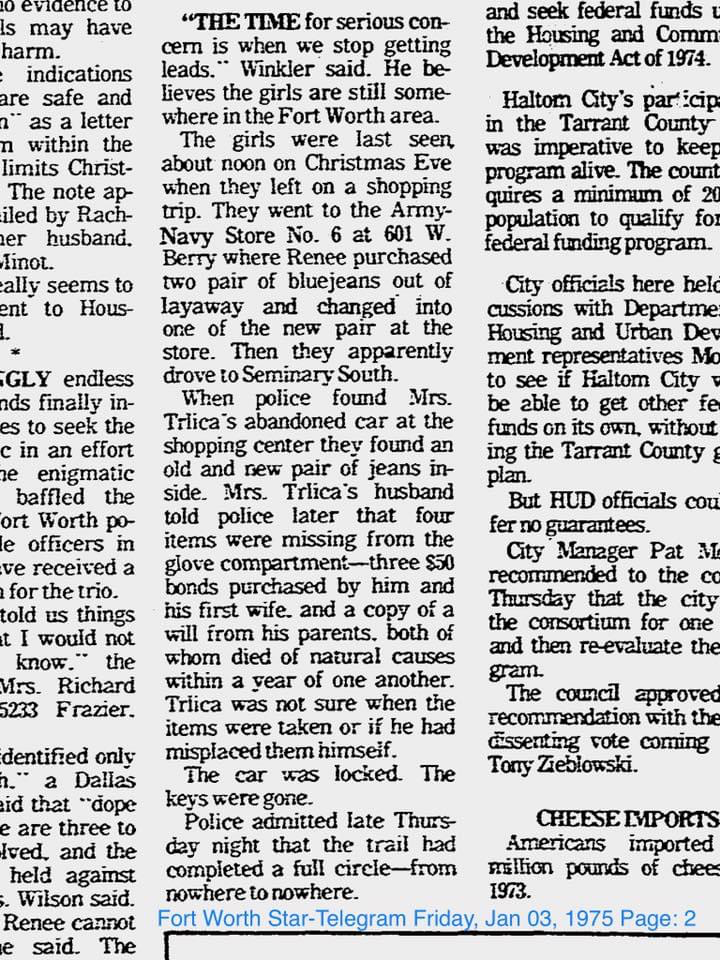 This somewhat answers another. A description of what was in the Oldsmobile when it was found and some things that were missing:
