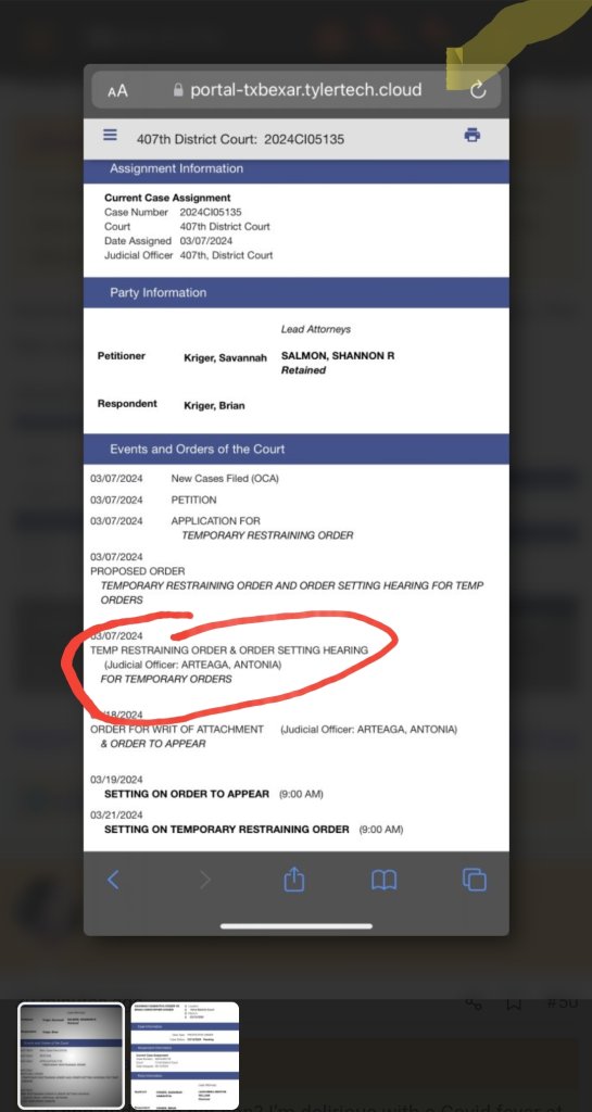 If you search her name on the Bexar County civil records, you can see she filed for a divorce, and applied for a Temporary Restraining Order against her husband, which hasn't been granted yet. Hearing for that is March 21.