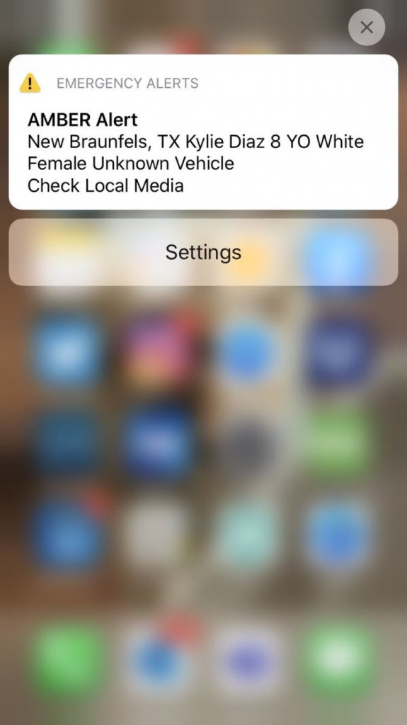 THE NEW BRAUNFELS POLICE DEPARTMENT IS SEARCHING FOR KYLIE MARIE DIAZ, W/F, AGE 8, 3 FEET, 5 INCHES, 50 POUNDS, BROWN HAIR, AND BROWN EYES. VICTIM WAS LAST SEEN AT 21:05 HOURS ON 04/03/2020, IN THE 500 BLOCK OF STARLING CREEK, NEW BRAUNFELS, WEARING PINK MICKEY MOUSE PAJAMAS.
