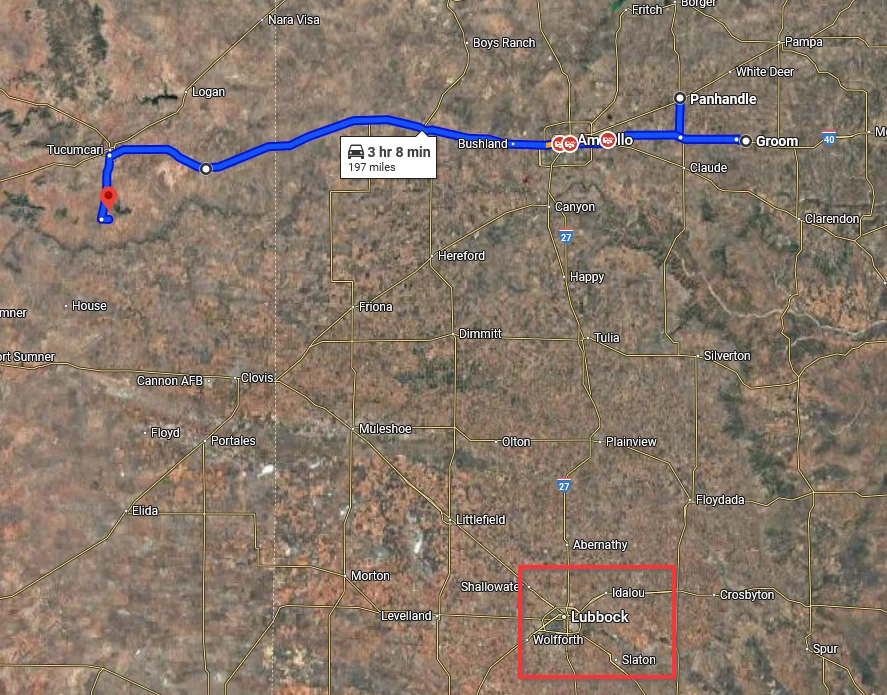 They left panhandle, were spotted in Groom, which is the wrong way, seems they turned around and instead of heading south to Lubbock they kept going west. From the previous signing in San Jon, New Mexico and the discovery of their bodies in Quay seems IMO to show they were turning south? MOO