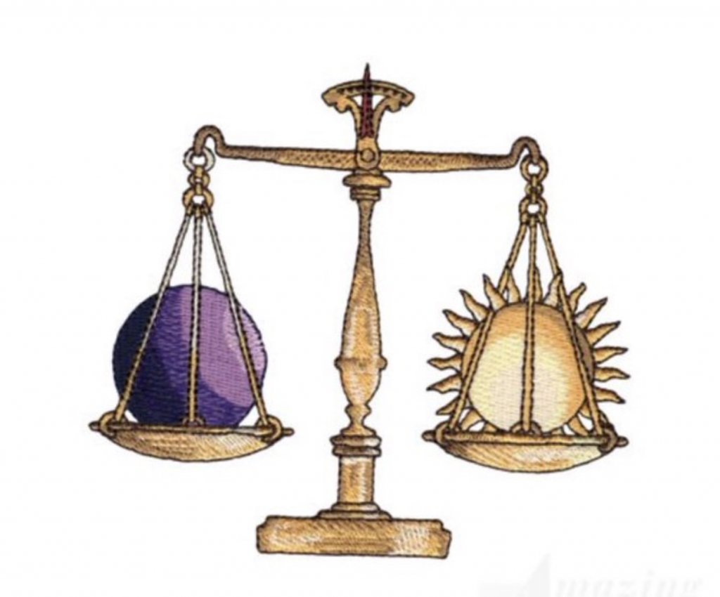Usually what is referred to as "Libra scales" is the glyph for the astrological sign, not a literal picture of scales.