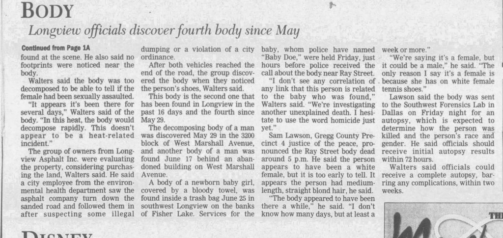 Type Unidentified DeceasedDate Body Found July 10, 1998