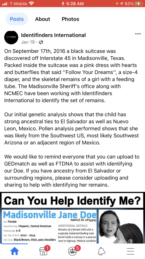 If you have any information about Madisonville Jane Doe, please call the National Center for Missing & Exploited Children at