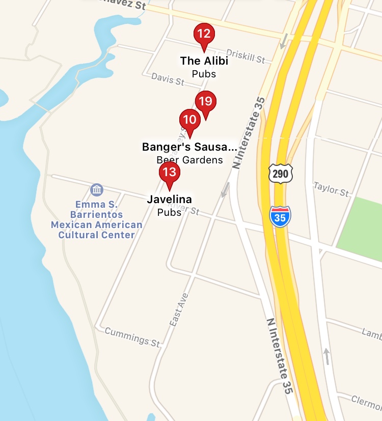 Craft Pride at 61 Rainey Street (corner of Rainey and River St) is the last bar in the Rainey Entertainment District.