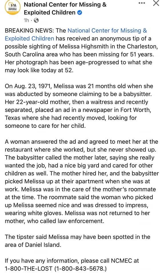 Melissa Highsmith remains one of the oldest missing persons cases in the country.