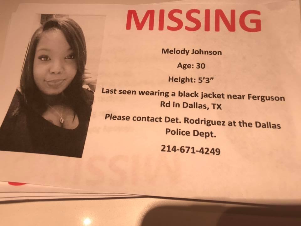 Friends and family are desperately searching for Melody Johnson, 30. She vanished Wednesday, Nov. 7 from her Dallas apartment in the 11500 block of Ferguson Road.
