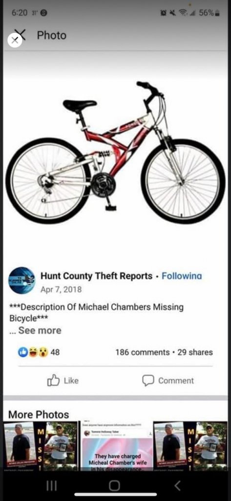 2. Last spring, a woman posted on the Hunt County Theft Reports FB page that she might know something about the Chambers case. She made it sound like someone told her something that might be relevant to this case. She eventually got a hold of Hunt County and PI Klein's office and Klein mentions this "tip" in a podcast from last spring. Klein made it sound like the tip related to where a body might be located. Very general, perhaps, but something to look into for law enforcement. Given that Klein and his team (with help from Texas Equisearch) were going to search some sloughs around the lake, I'm assuming those searches were related to the tip.