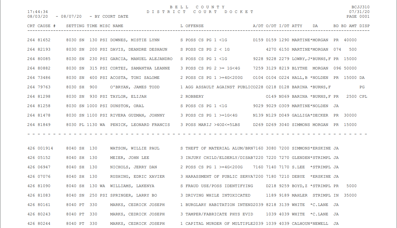 7/21/20 Update: Attorneys for Marks asked a Bell County state district judge Tuesday to delay his death penalty trial until in-person proceedings can resume. State District Judge Fancy Jezek said she wants to hear from Bell County's IT department & from Lifesize before deciding how to proceed with the trial. 7/21/20 Update: Next hearing on 8/4/20. 8/4/20 Update: Next hearing on 8/11/20.