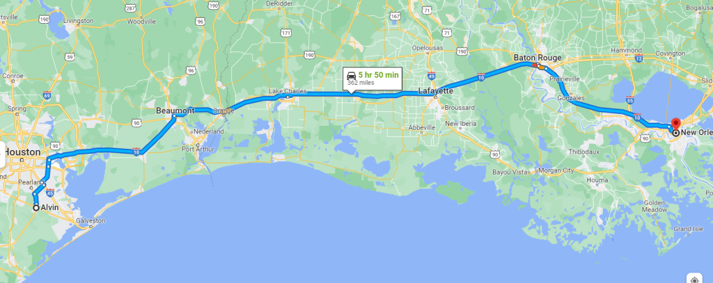 POTENTIAL (SHORTEST) ROUTE FROM ALVIN TO NEW ORLEANS