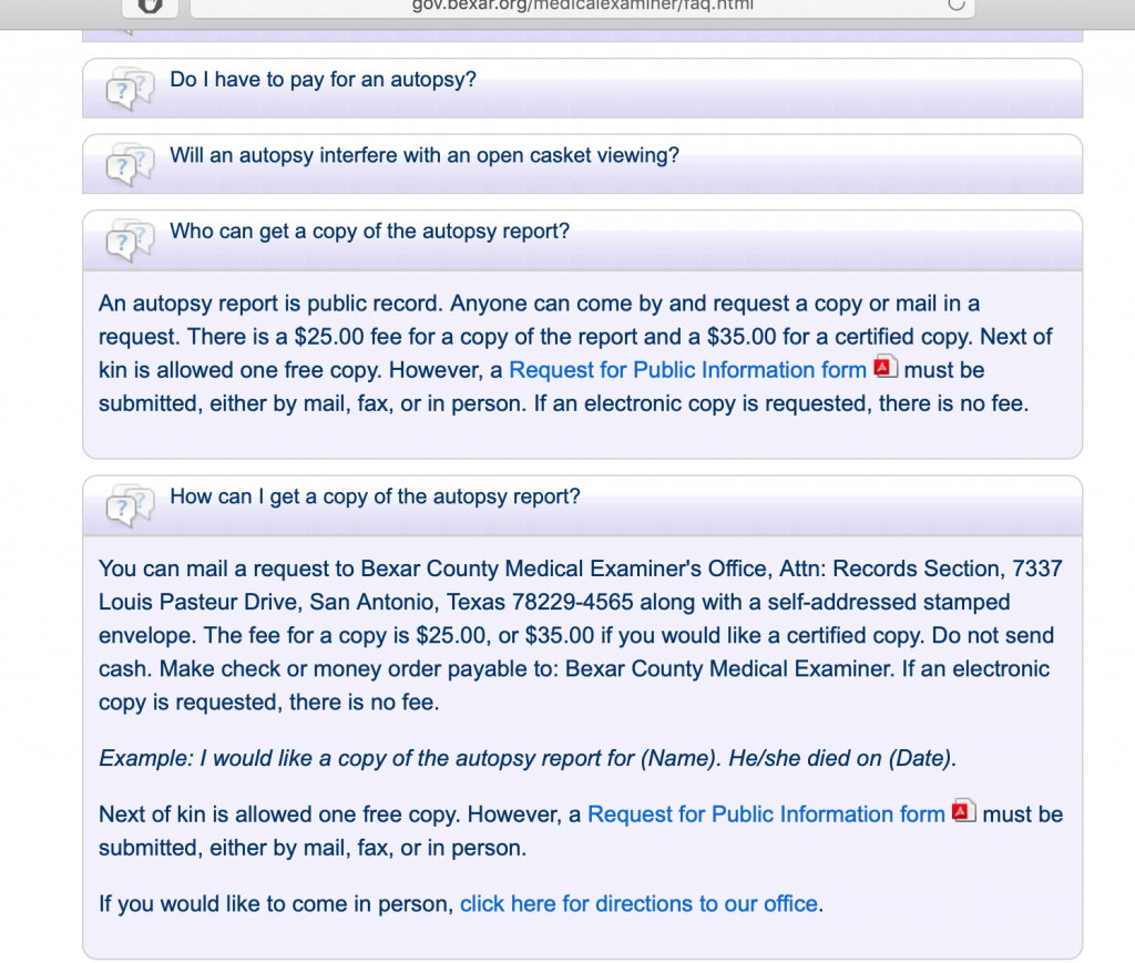 The Bexar County Medical Examiner's Office is affiliated with the University of Texas and is located on the Univ. of Texas Health Science Center campus. (It is not a tiny, rural, underfunded, incompetent facility.)