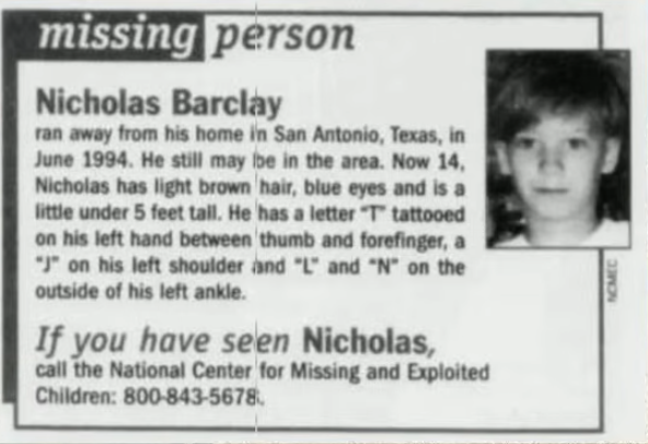There were only two other instances where Frederic Bourdin attempted to pose as a missing child, and in those cases, he was found out early on; this was the only time that he was accepted by the victim's family members, and he has even stated that he couldn't believe he got away with it; he knew he looked nothing like Nicholas. One of the fears that he had at first was that the real Nicholas would show up, but after being around the family, Fredric began to realize that Nicholas was not coming back, and the family knew it, they were pretending that he was Nicholas. There's also quite a bit of evidence (from more than one source) that Beverly knew all along that Frederic was not Nicholas. She also admitted to David Grann that before Nicholas went missing, she was considering giving him up to the courts. Nicholas was always the one who was sacrificed, mistreated, and neglected. It's terrible. Even now, he's an afterthought, if his family thinks of him at all.