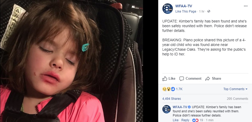 Beautiful four year old girl found alone. Police asking for public's help.