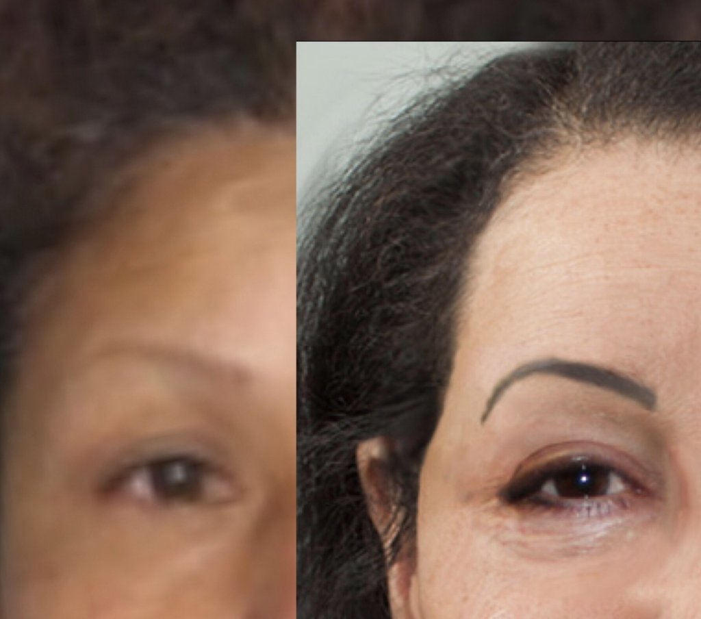 Hrm. Both reconstructions show only lipliner. When you get your lips entirely tattooed on, they draw the outside, then fade the color inward. You shouldn't see a "line" if it's done properly. Kinda nitpicky, but just a thought.