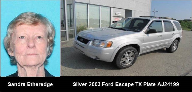 Sandra Etheredge, 76, was last seen at the intersection of Cheatham Street and South LBJ Drive at 10:15 a.m., authorities said.