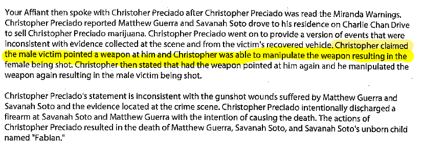 Of course, there's no truth anything by CP alleging of how the shooting went down, it just alludes to MG bringing a weapon. We know for fact that MG had weapons, but as of this date, we don't this to be true for CP. JMO
