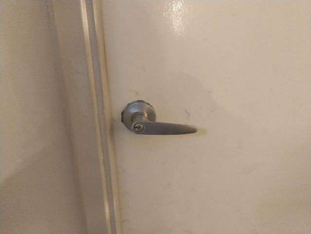 By the time I was eight I knew a door that could be opened with a fork handle wasn't even an illusion of safety, it just made the person trying to get in madder. I didn't play around, it's got a snib inside, but a proper key lock outside.