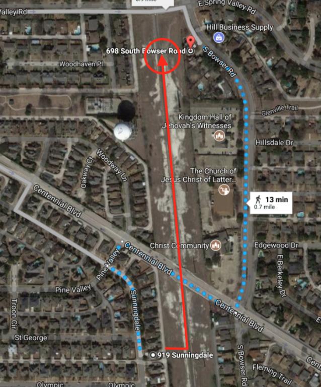 The red balloon is the Spring Valley culvert area searched 1.7 miles west of the home (E Spring Valley Rd just east of Brick Row Dr)...but she was east, apparently, at S Bowser and Spring Valley. Sorry to be so OCD-repetitive, just can't get over how close I was and how I might've found her earlier...if only I'd used my head. :cry: