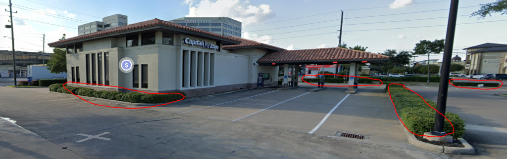 The first two photos below are from the Capital One off Voss that TY was at that show the ATM attached to the bank and the third one is of the Capital One off of Westheimer with the ATMs furthest away which is exactly what you were probably picturing as was I and if that was the layout of the one TY was at then I would agree with that theory being a lot more likely.