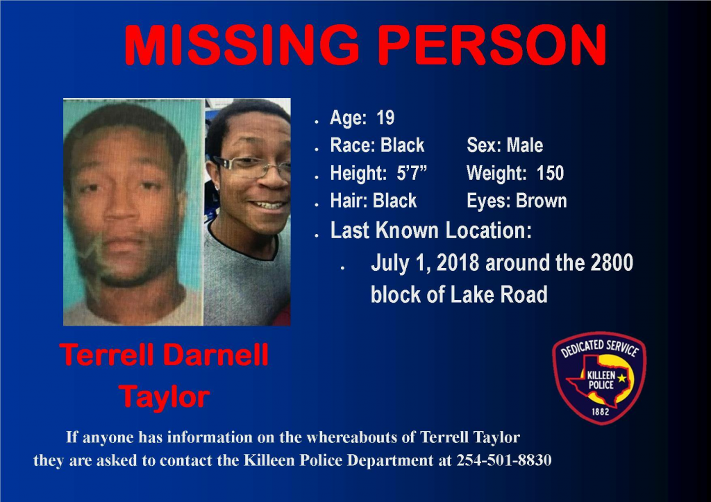 Detectives with the Killeen Police Department are requesting the community's assistance in locating 19 year-old Terrell Taylor who was reported missing on July 1st.