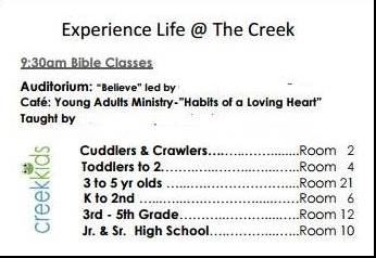 * Children's Church - ages 2 to 2nd grade: Drop off at Room 10. Pick up at Room 8.