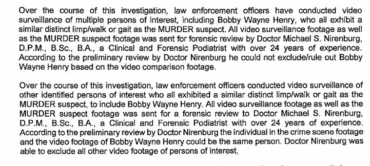 As to the question of why 7 months on the SW - my thought is that it came down to the podiatrist. It probably took some time to find the expert, then more time to compile footage of various POIs and their gaits, and still more time for the podiatrist to analyze the footage. Then once they got word back that everyone was eliminated except BWH, they had the probable cause they needed.