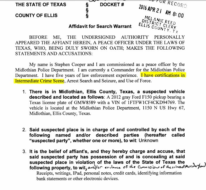 Interesting to me both Cody Moon and Cody McKinney affidavits state this.