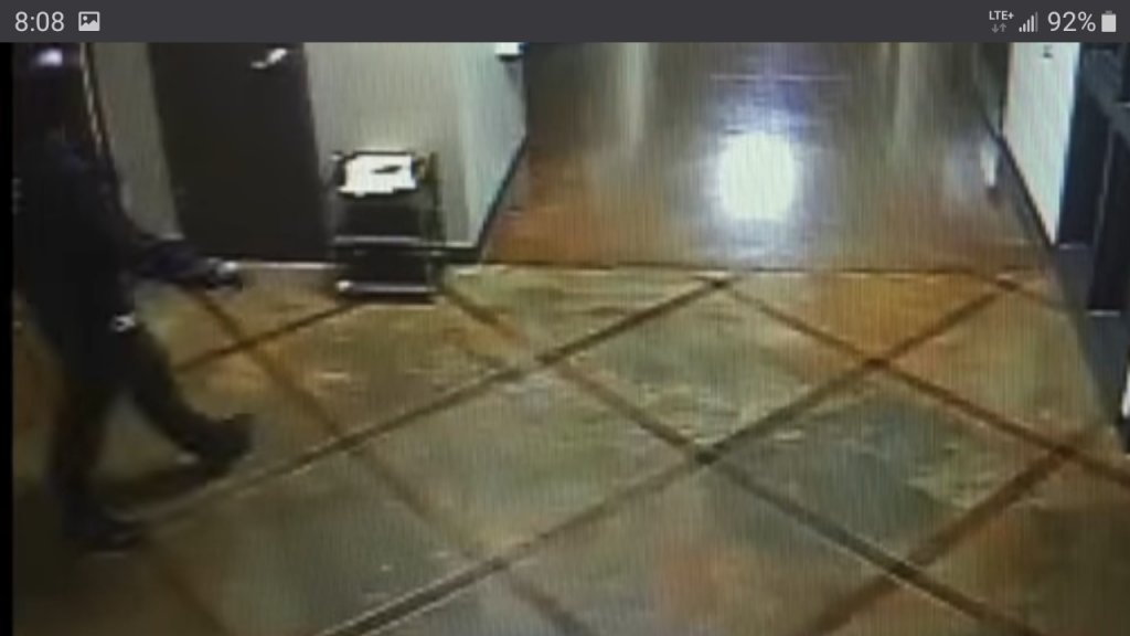 Here is a screenshot. That camera (inside the SW porte cochere entrance facing north) has a range all the way down the main hallway, past the glass prize display case, and even out the NW doors. How could there have been a struggle there not on camera?