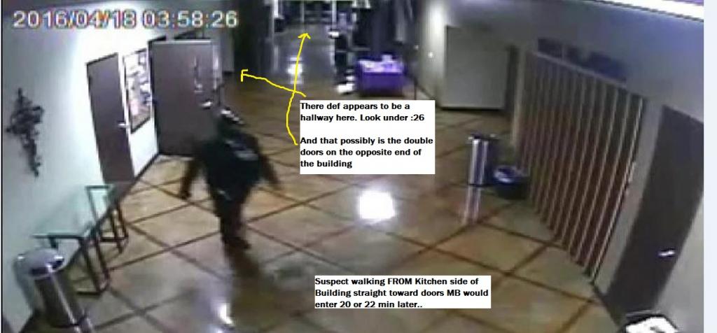 JMHO, but the SW Corner of the church could be any area in the SW Corner, not just the Sanctuary/Auditorium. Plus going by the SW for MB iPhone& iPad, it also states she was walking in suspect location. The Press Conf from April18, the Chief of MPD and Captain of CID state she was seen walking...and then the motion activated camera didnt pick up the motion. JMHO from what I reading, was in an area where if the camera had picked up the motion more would have been captured on video. Did the Suspect do something to that camera then lay in wait for her? I see it very possible even probable but that jmho There is a hallway to the right, just prior to the Main Entrance... this area is off to the side just prior to the door Suspect opens in the Time Stamped video ... there also are glass top tables in that area... unsure where the glass could have came from if it was inside the Sanctuary. JMHO