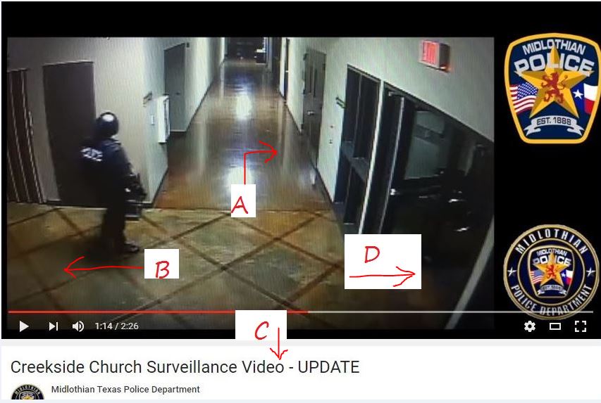LEO said Perp first appeared on video at 358. Thats the time stamped image that is a little better to look at but the MPD video show a few seconds prior (time stamp door opened and walking off, fixing to leave area. ...