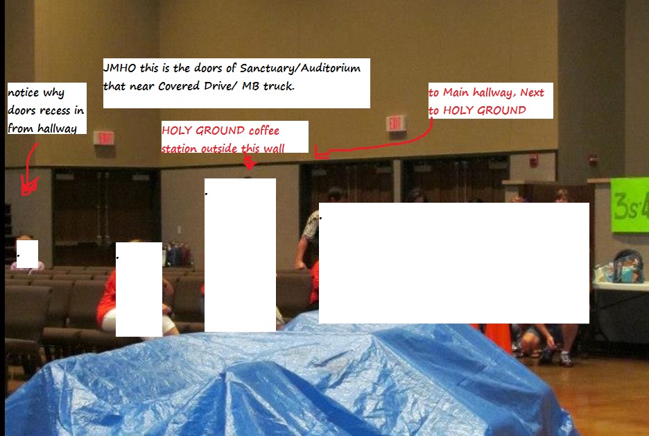 View attachment 93314 EXAMPLE of inside the Sanctuary / Auditorium ...behind the Holy Ground coffee area, NOTICE the doors from outside and placement. This is why my belief is that the Murder suspect went into the Sanctuary/Auditorium after opening the Dutch doors.