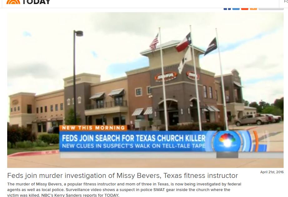 The murder of Missy Bevers, a popular fitness instructor and mom of three in Texas, is now being investigated by federal agents as well as local police. Surveillance video shows a suspect in police SWAT gear inside the church where the victim was killed. NBC’s Kerry Sanders reports for TODAY.