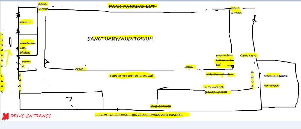 Your map is INCREDIBLY helpful. I had the perp on three different hallways during the footage before and that wasn't the case using your map. He/she stays right around the awning entrance area. (ETA: Except towards the beginning, you do seem him coming down the hallway towards the bulletin board and that is from the kitchen side/opposite to the awning side.) It's chilling to watch with the map and your mind starts really going a million miles an hour trying to figure out what he/she was doing there. This helps so much, thank you for all of your hard work!