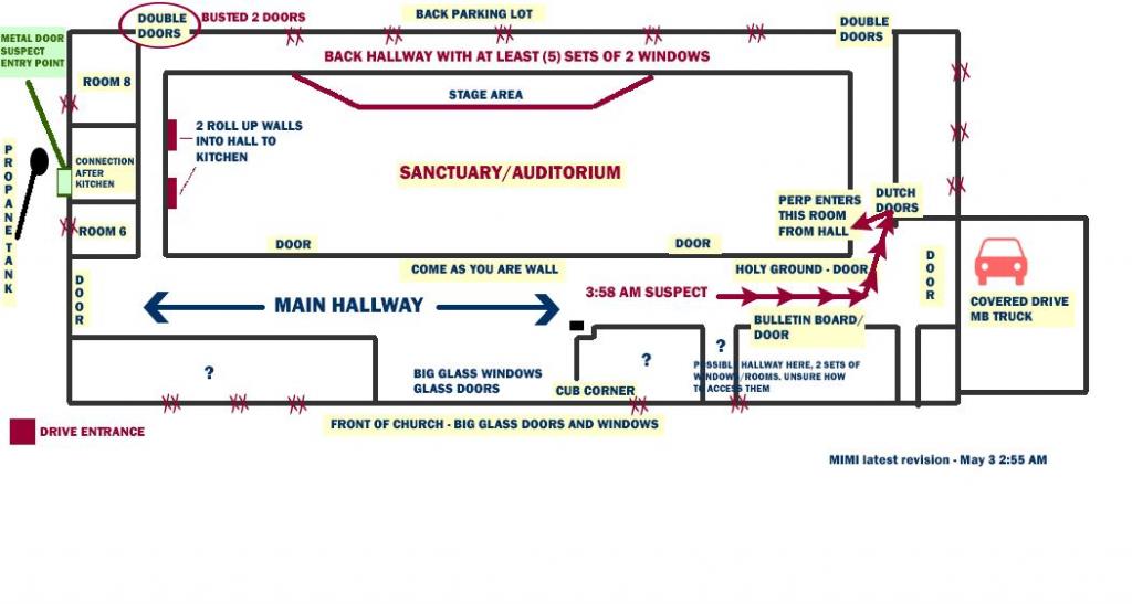 SO I thinking there HAS to be at least 2 rooms with outside windows, so there has to be a hallway back there (be the back of the room that Suspect opened and next one tried to open. Maybe these are storage closets? Where the heck are the restrooms? Sorry for my rambling I am way past tired lol