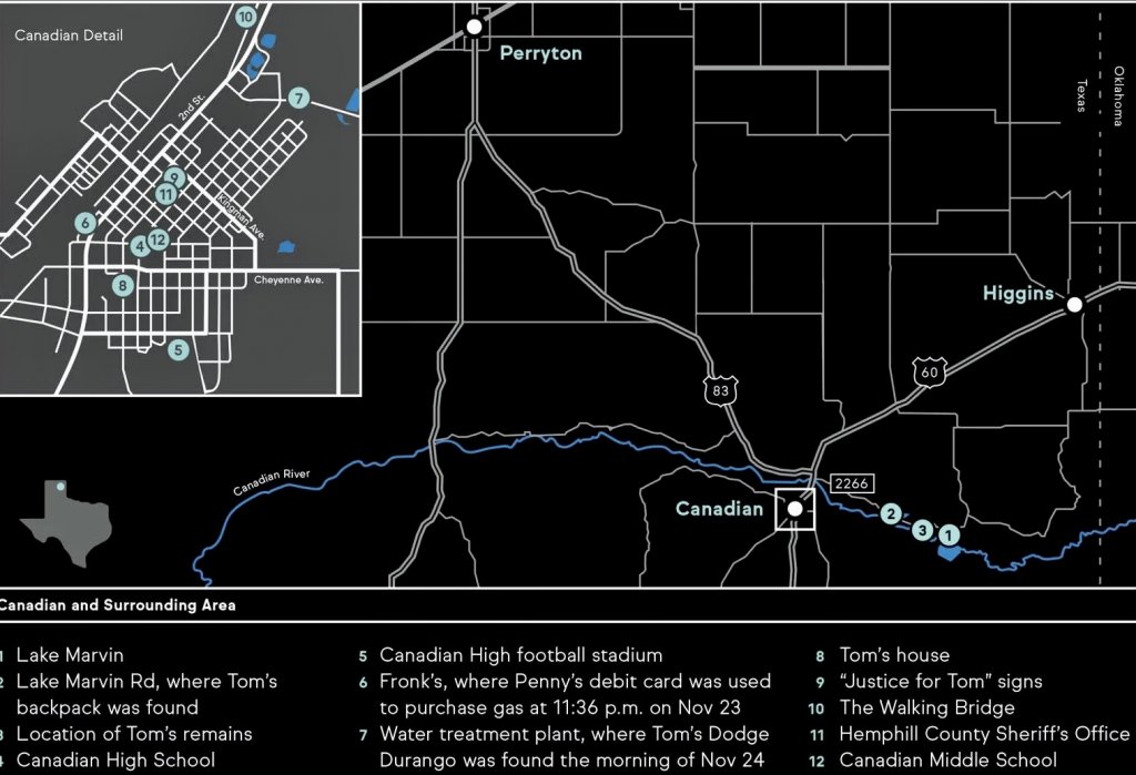 “The rest of that fall [2017], Klein continued his investigation. In November, he made yet another appearance on Chris Samples’s radio show to talk about a tip he had received: allegedly, a brown or copper-colored Ford F-250 pickup had been seen tooling around the streets of Canadian at about the time that Tom had disappeared. Klein asked that anyone with pertinent information call his tip line.” (BBM)