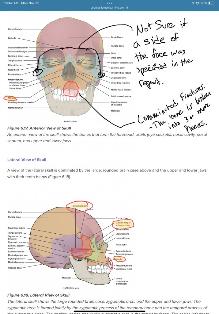 So I have highlighted the areas where they have disclosed skeletal damage occurred. Note: a Comminuted Fracture means the bone is completely broken into 3 or more pieces. It's probably a fair guess that if TB had survived, this injury would have required reconstructive surgery.