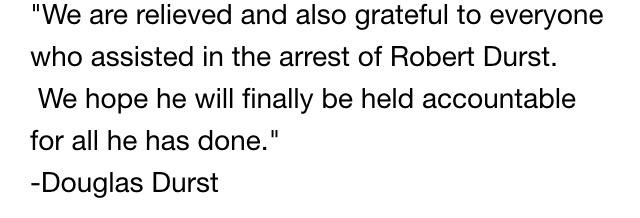 Very good news he has finally been arrested for Susan Berman's murder. Justice may be slow but often well-worth waiting for...and hopefully this time he will be convicted, as he should have been in 2003 in Texas.