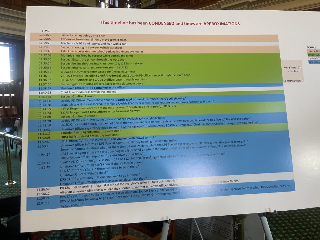 Recorded audio from dispatchers and body cams from the officers on scene don't lie - they are considered facts when reviewing evidence. In that screen shot of the timeline that someone posted above - McCraw explained the colors - the transcripts in blue were transcribe from body cams and I believe the green was transcribed from radio/dispatch audio. So...........................