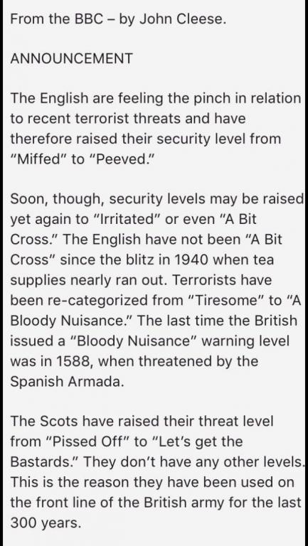 I have no doubt all in the UK will remain strong and united. Our country did the same when 911 rocked us all to our very core.