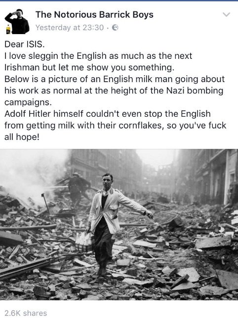 Exactly, it only takes one idiot, just as we can't judge all Muslims. Sending love over the tops from Leeds :rose: