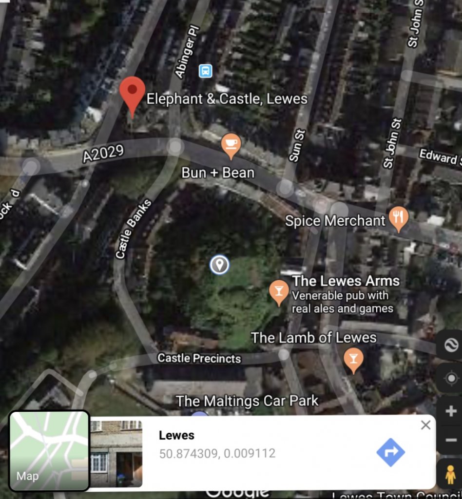Never been up there not sure if it's accessible it's a mound of mostly scrub land maybe an old battlement for the castle. There's a rumoured escape tunnel from the castle to Lewes arms in local lore.The green area right in the centre of the attached photo, it looks quite thick and dense - is this some kind of park? I’m assuming this area has been searched thoroughly.