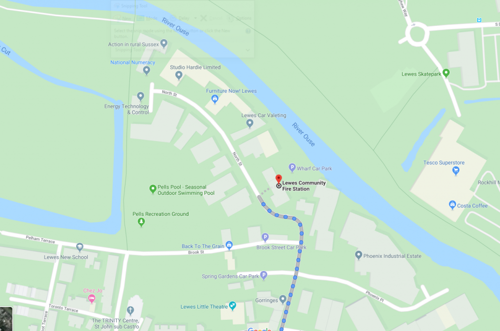 Directions for walking from the Lamb of Lewes to the Fire Station include a route along Market St , which then becomes North St when it reaches the fire station