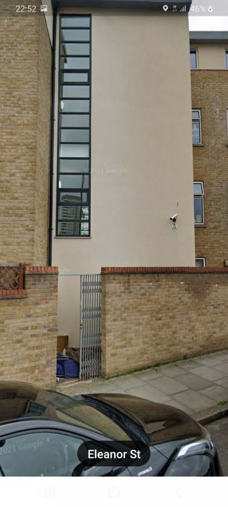 Exactly, he must have taken the first street on the right which is Mornington Grove. Mornington Grove is a quiet residential street then you can take Eleanor Street from that road. Eleanor Street is kinda more industrial area... and then you have Tidworth Road where there are a few restaurants and take aways. It's busier down there. Probably someone saw him but without any cctv pictures it's hard to identify him. It's not enough writing a description of his clothing that day. Was he wearing sunglasses and a mask maybe? Who knows.