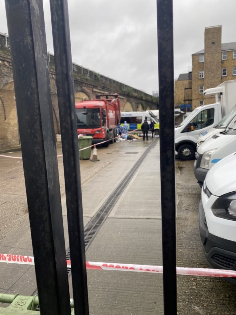 Red bin lorry in Camberwell where a man’s body was discovered this morning. No details so far on how he died. @itvlondon
