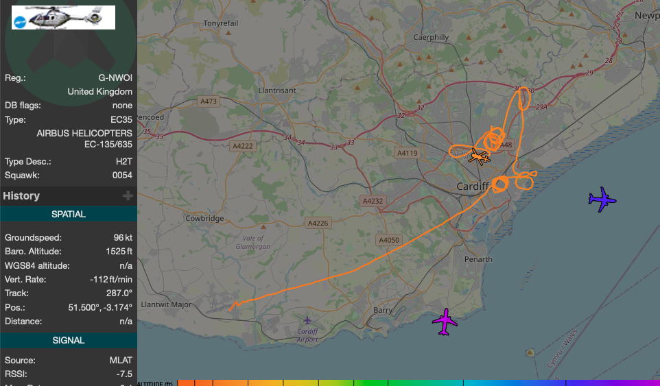 NPAS helicopter is in the air, they seem to have briefly looked at Porthcawl but are being very detailed in east Cardiff.
