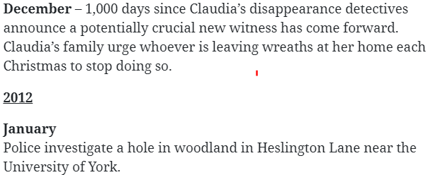 I think that on the evening of the 18th on Heworth Road these groups and their activities came together. A decision and plan had already been made regarding CL by then. I think she was extracted from the house that night, and people were in and out of her front door that evening.